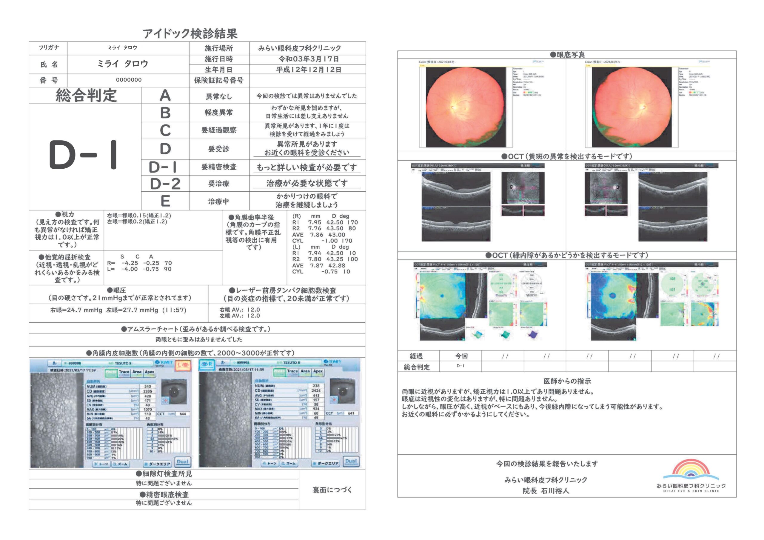 いろいろな眼科で、このアイドックは受けることができますが、当院では